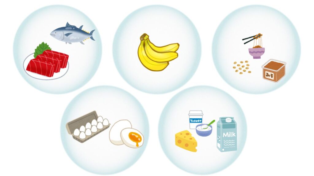 トリプトファン(セロトニンの材料となる必須アミノ酸)を多く含む